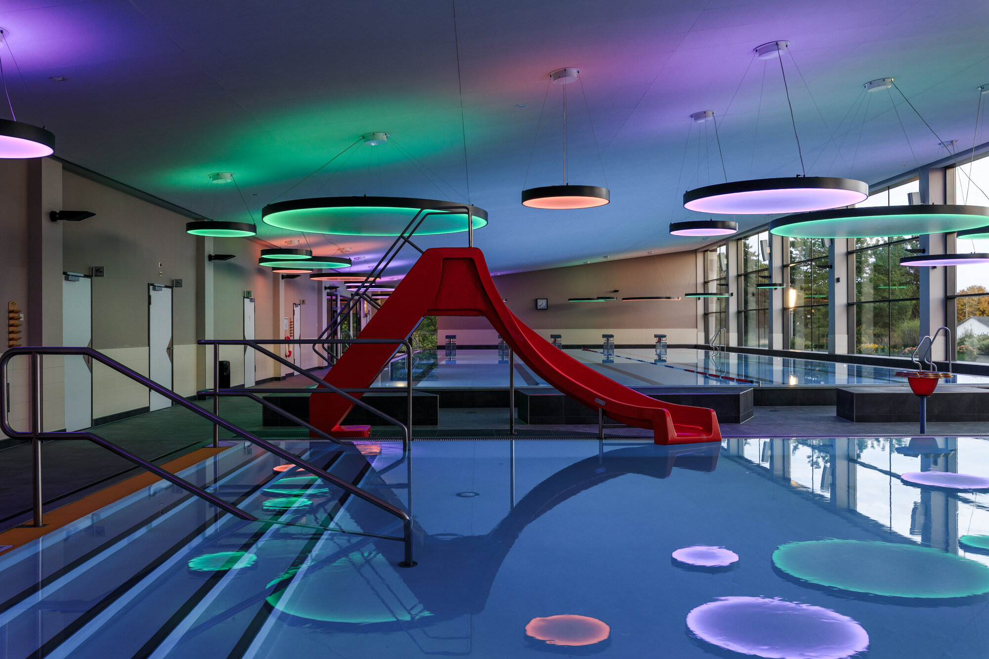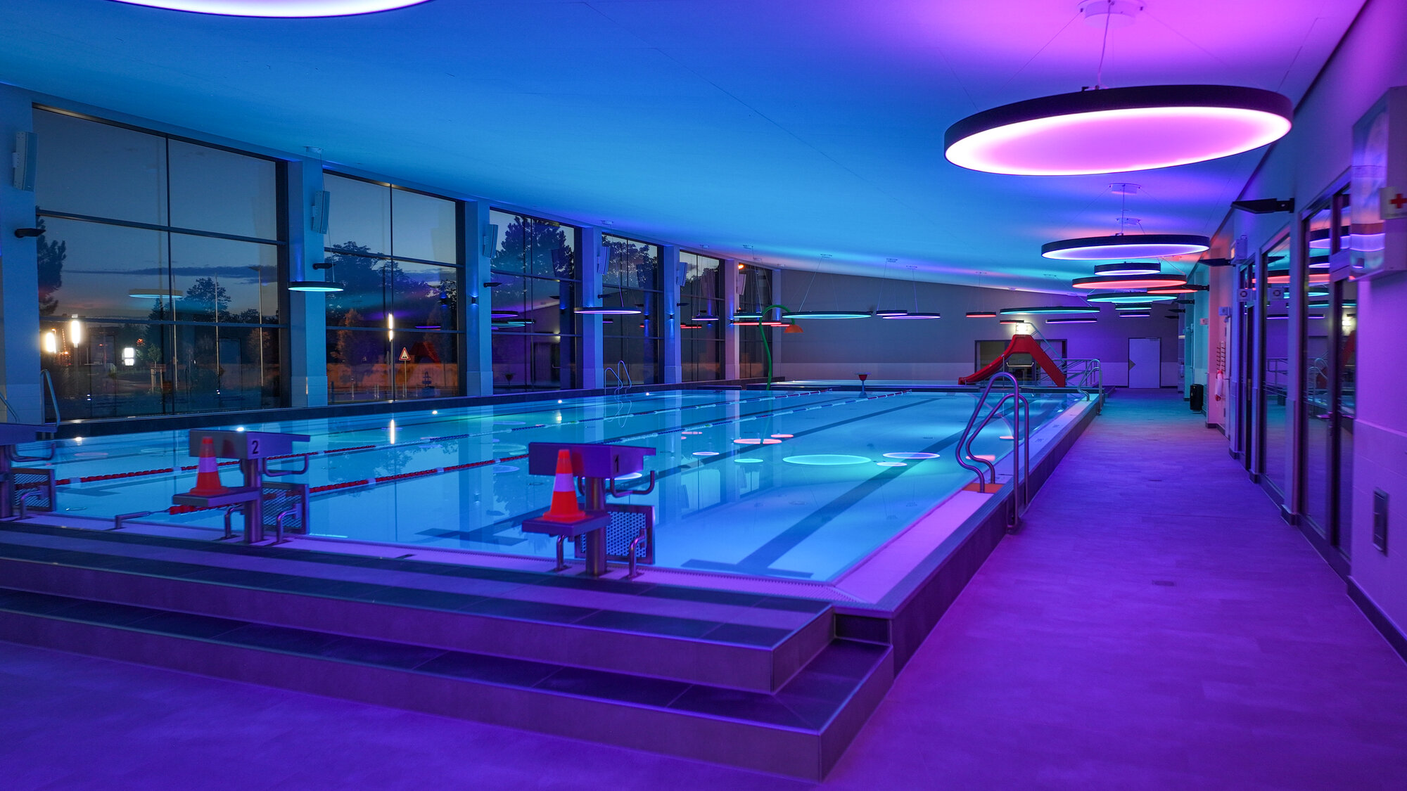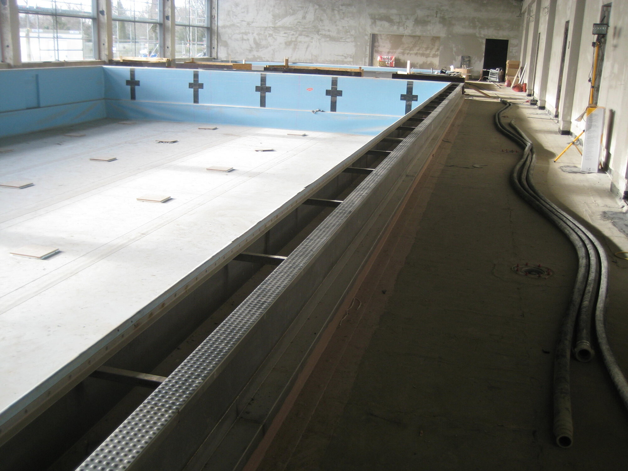 Die umfassenden Arbeiten verliefen planmäßig. Schon im August 2011 konnte der Probebetrieb starten. Besonders erfreulich war der gute Bauzustand, der zu einer deutlich günstigeren Betonsanierung führte. Dadurch ließ sich ein zusätzliches Highlight realisieren: die Saunalandschaft „Feuer und Stein“ mit eigenem Außenbereich und Schwimmbecken.